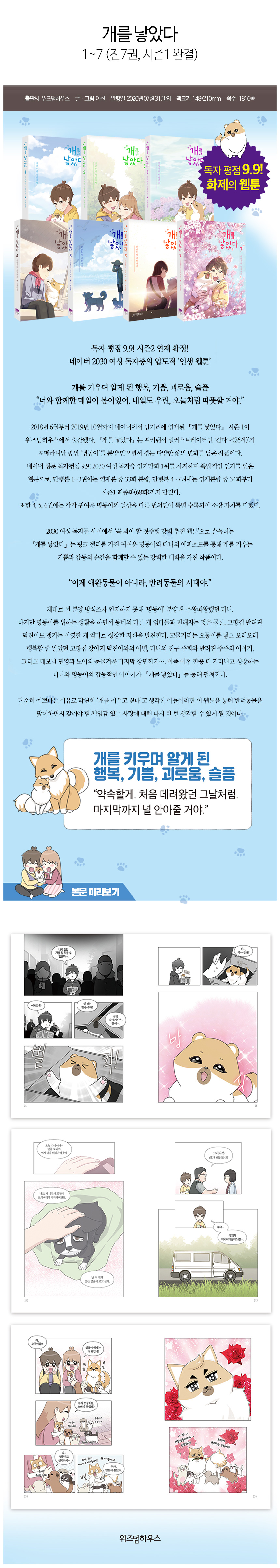 베스트 도전만화에서 개를 낳았다 ~만남부터 이별까지~라는 제목으로 연재하다가 정식 연재로 승격된 웹툰이다.