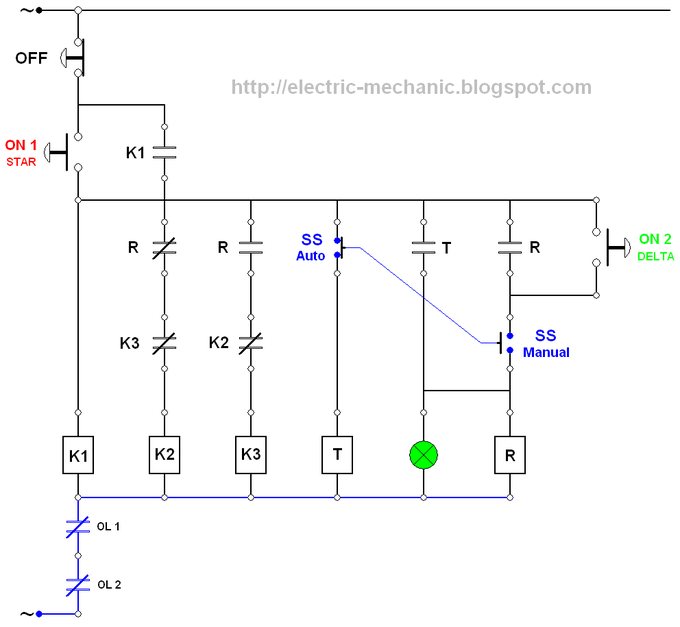 Dalam rangkaian daya star delta manual maupun automatis itu sama jadi komponen kontaktor untuk star delta dengan motor 10a. Rangkaian star delta auto manual. Dan lihat kembali gambar wiring rangkaian kontaktornya. Rangkaian push button on off kontaktor подробнее. Learn how star delta starters work, why we use them, where we used them and the math behind how they work.
